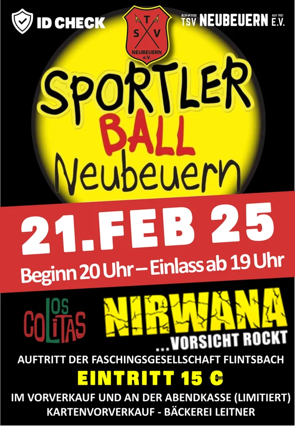 der legendäre Ball für alle Sportler - und solche, die es noch werden wollen - in der Beurer Halle in Neubeuern. DREI große Bars, ZWEI Bands, EINE sauguade Stimmung und heiße Barmädels!